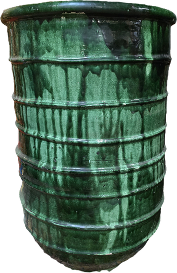 Diese glasierte marokkanische Grünkeramik aus Tarutant wir extrem hart gebrannt. Die Gefäße besitzen ein unglaubliches Gewicht und strahlen durch ihre Farbgebung wohl den perfekten mediterranen Flair aus.